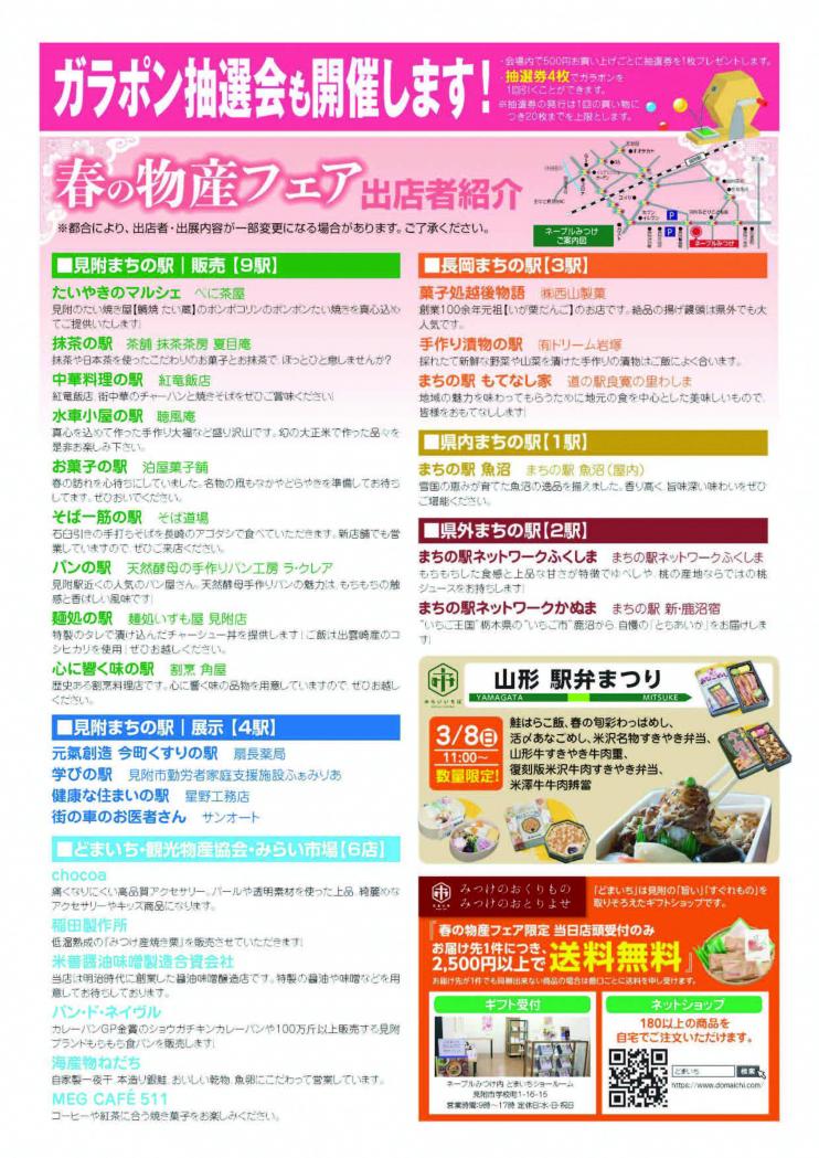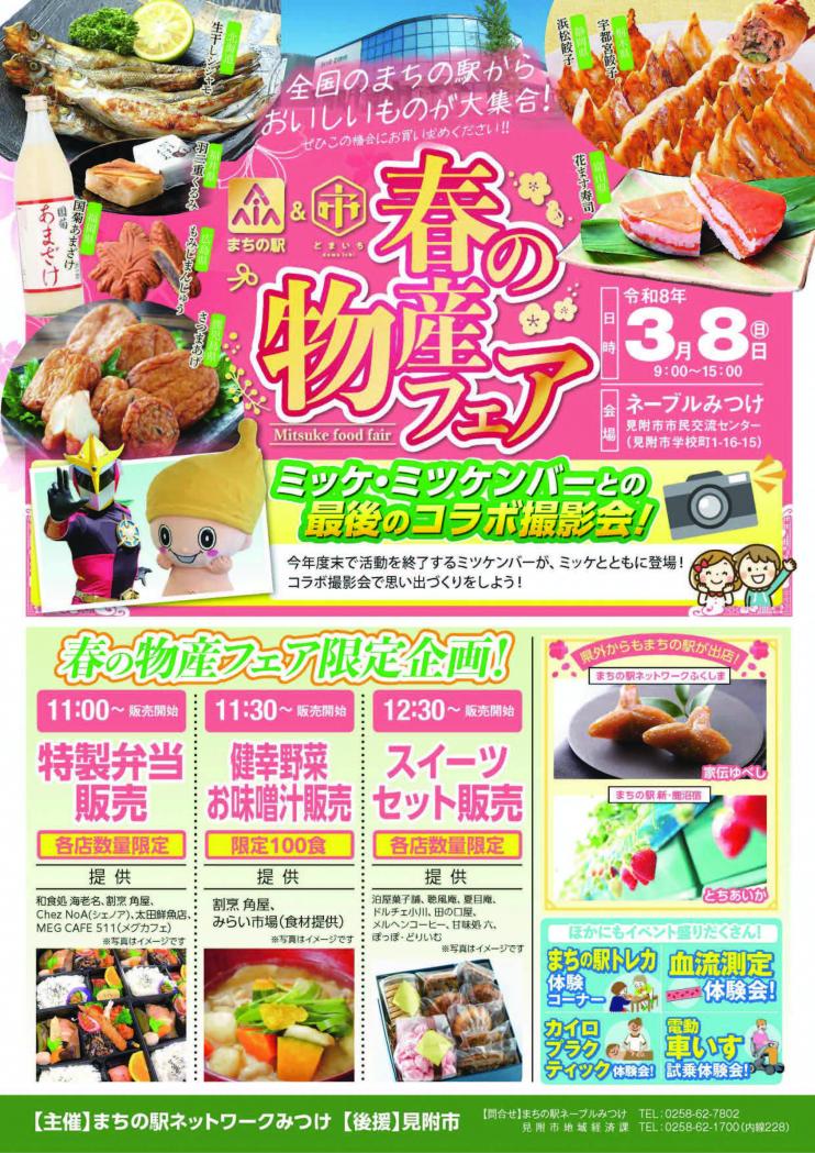 全国各地にある地域交流の場「まちの駅」と、見附市ギフトショップ「どまいち」の物産フェアを開催します。